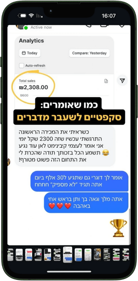 "כל השנה הראשונה הפסדתי. פתחתי 30 חנויות, קניתי כל קורס אפשרי, וכלום לא עבד בעקביות. שרפתי אלפי שקלים על קמפיינים כושלים."
