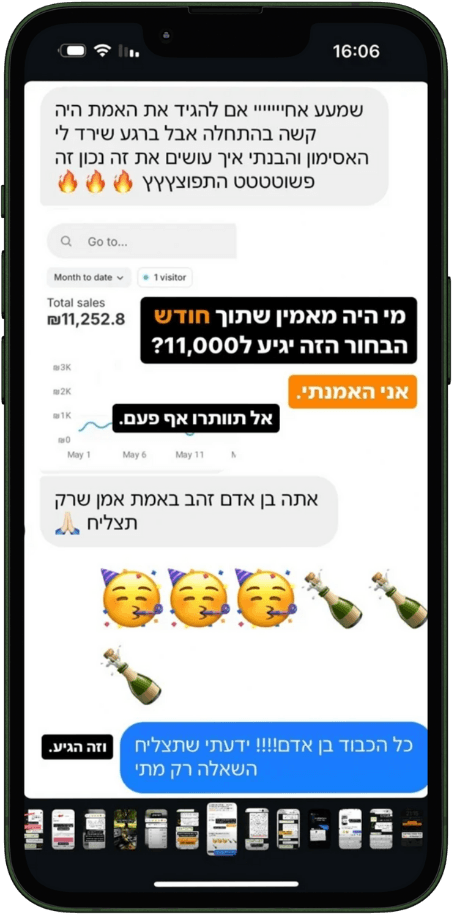 "כל השנה הראשונה הפסדתי. פתחתי 30 חנויות, קניתי כל קורס אפשרי, וכלום לא עבד בעקביות. שרפתי אלפי שקלים על קמפיינים כושלים."